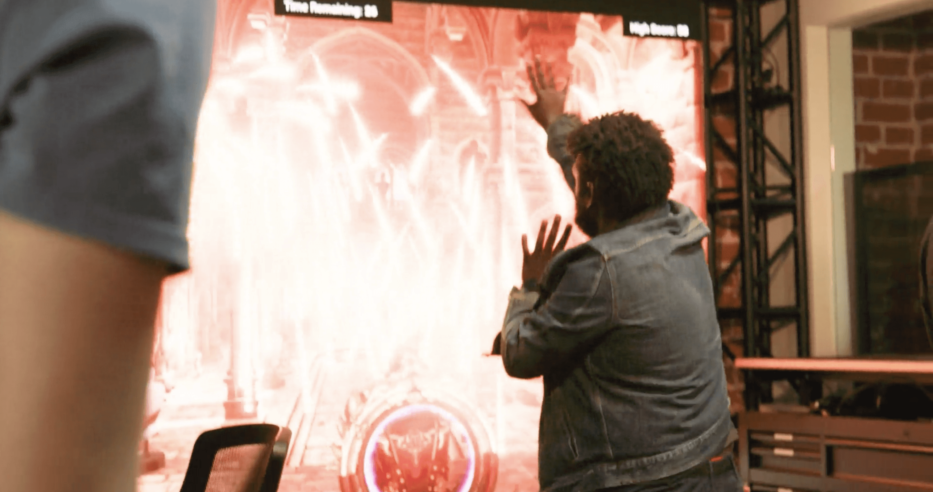 Participants practiced spellcasting through gesture recognition, projecting fireballs and interacting with destructible elements in a dungeon-style environment. The experience combined physical movement with real-time feedback to create an engaging, game-like interaction.